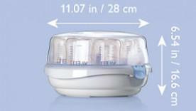 HU Description A Philips AVENT SCF281/02 mikrohullámú gőzsterilizáló könnyű és kompakt kialakításának köszönhetően utazáskor és otthoni használatra egyaránt ideális.Amennyiben a fedelet nem nyitja fel, tartalma akár 24 óráig steril marad. Villámgyors és könnyen használható2 perc alatt sterilizálja a cumisüvegeket Kompakt és könnyűUtazáshoz is kényelmes. A legtöbb mikrohullámú készülékbe belefér. Biztonságos, könnyű kezelésAz oldalsó zárócsatok zárják a fedelet. Hatékony sterilizálásA természetes gőzsterilizálás, elpusztítja a kórokozók 99,9%-át.A melegítés pontos ideje a mikrohullámú készülék teljesítményétől függ: 1200-1850 W-ig - 2 perc , 850-1100 W-ig - 4 perc, 500-800 W-ig - 6 perc.Mérete:magasság: 16,6 cmszélesség: 28 cm