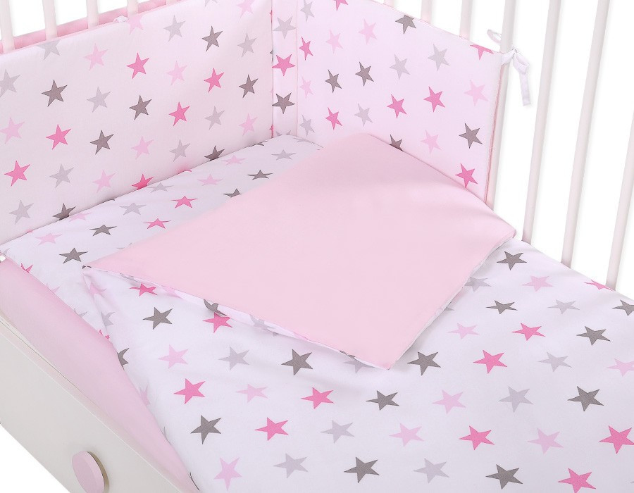 BabyLion Prémium 3 részes ágyneműhuzat szett - Rózsaszín csillagok
