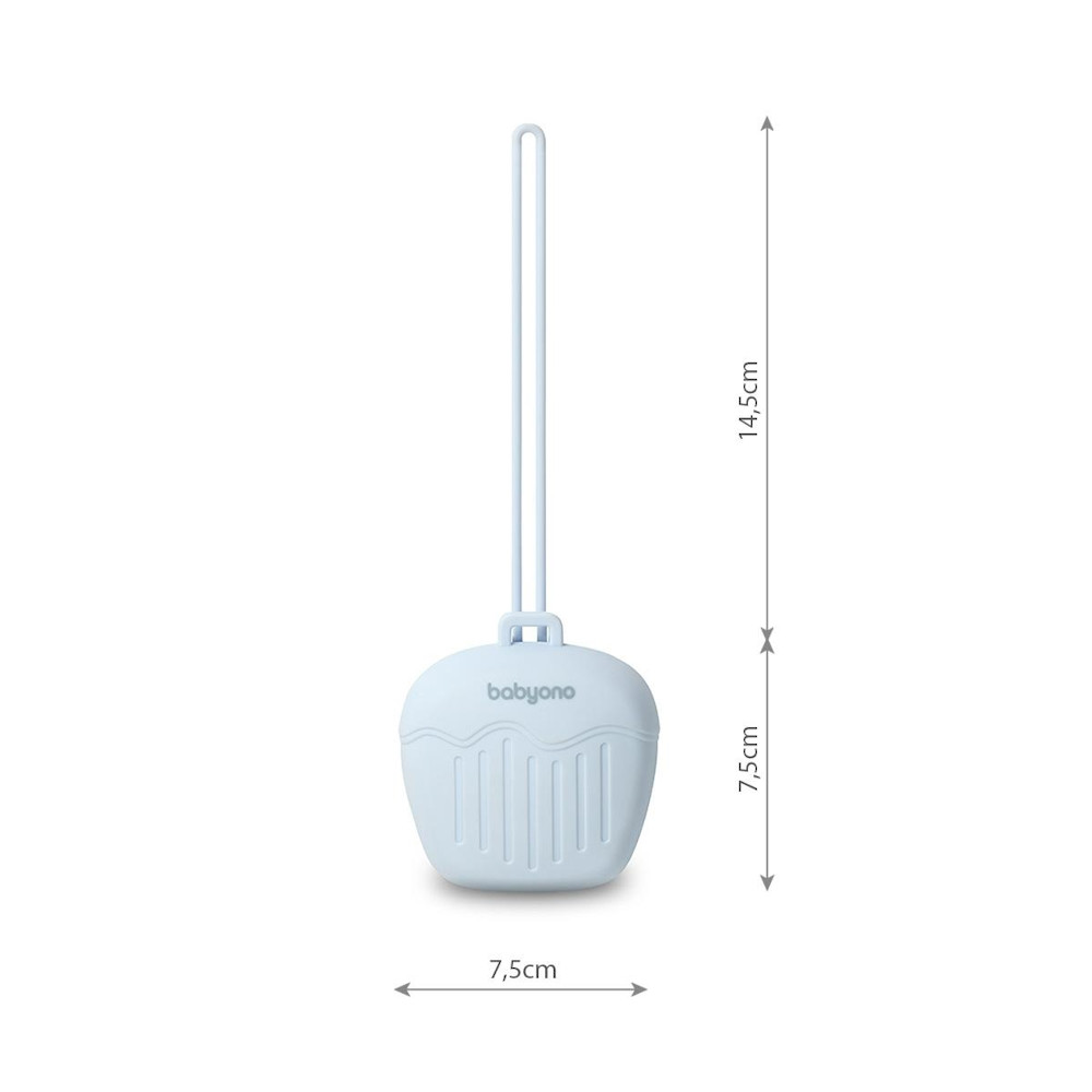 A cumitartó BPA-mentes szilikonból készült. Puha, tartós és mosogatógépben mosható. Biztonságos és higiénikus helyet biztosít a kicsi cumijának.