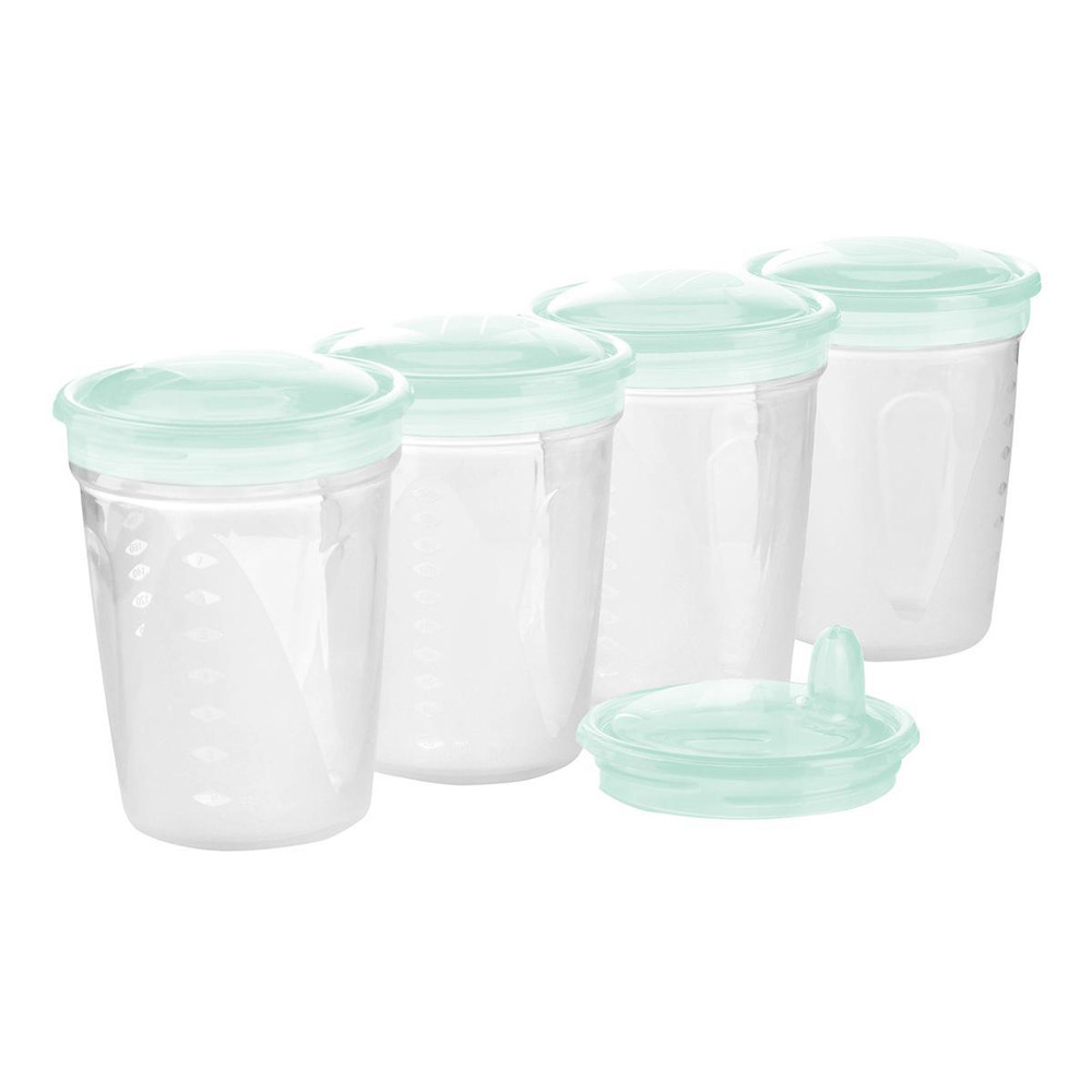 Az anyatej, a gyümölcslevek és más ételek tárolóedényeit az élelmiszerek újrafelhasználható tárolására és fagyasztására tervezték. Az itatócsõrrel ellátott fedél lehetõvé teszi az anyatej közvetlen pohárból való etetését. (Az étel/ital hõmérsékletét mindig ellenõrizze, mielõtt a babának adná!)