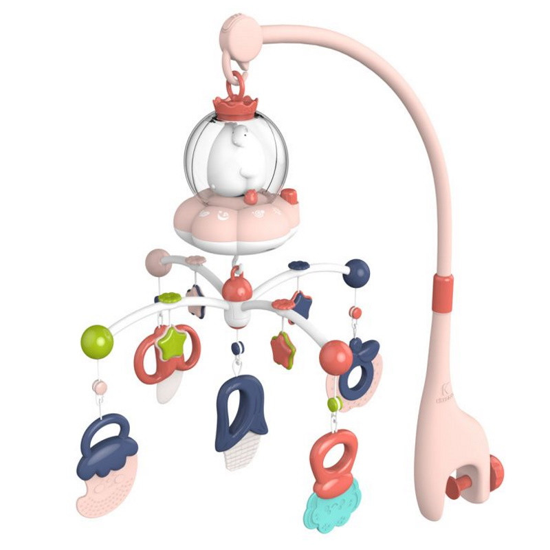A természetes hangok és a szelíd zene nyugodt légkört teremtenek. Az érdekes és színes játékok serkentik a baba figyelmének fejlõdését, és a rágókaként használható figurák segítenek a csecsemõk fogzási fájdalmai enyhítésében.
