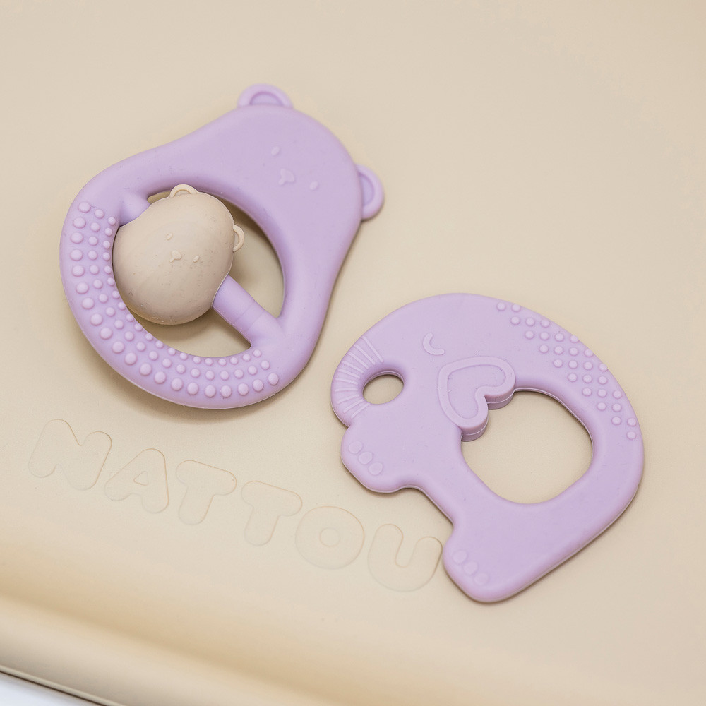 Nattou rágóka szilikon Mackó mama lila
