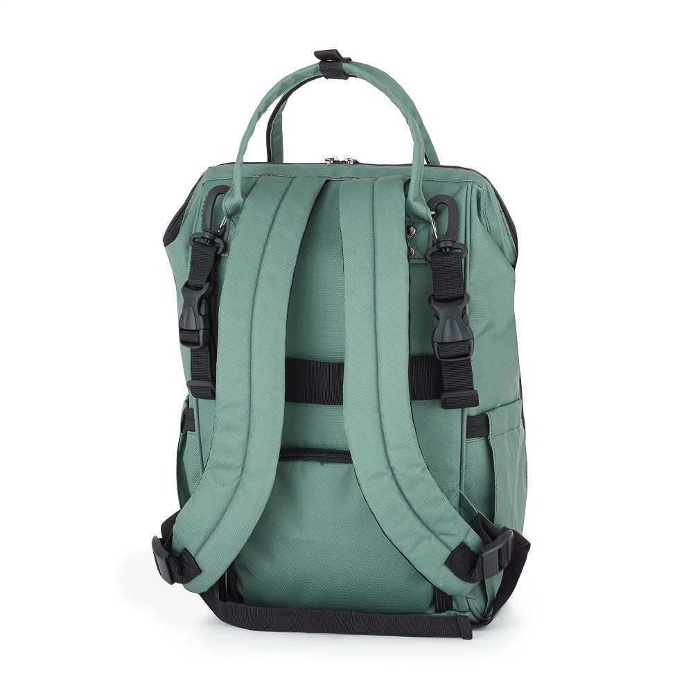 Ez a kényelmes és rendszerezésre tökéletesen átgondolt hátizsák kiváló minőségű, nedvességálló anyagokból készült. Oldalpántokkal rendelkezik a babakocsihoz való rögzítéshez, a fő rekesz pedig kétirányú cipzárral záródik. A nagyszámú zseb, köztük funkcionális zsebek, és az oldalsó nyílásnak köszönhetően könnyű hozzáférés a tartalomhoz, megkönnyíti a csomagolást egy kiránduláshoz vagy sétához. A hátizsák rendelkezik egy hőszigetelő zsebbel, egy zsebbel a vizes holmik számára, palackok számára kialakított zsebekkel és egy kulcstartóval a kulcsok számára. A csomagban pelenkázó alátét is található. A hátizsák súlya a benne lévő tárgyak nélkül nem haladja meg az egy kilogrammot.