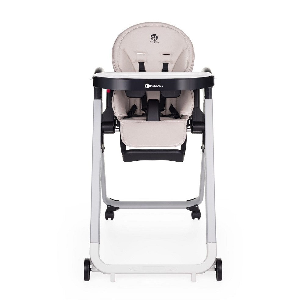 A Petite&Mars Tasty gyermekszék a kényelemre és funkcionalitásra tervezve. Egyszerűen beállítható a gyermek igényeihez, köszönhetően a 7 magassági állításnak, a 175 fokig dönthető háttámlának, amely ülésből fekvő pozícióba állítható, valamint az állítható lábtartónak. A szék kárpitozása tartós, sima PU anyagból készült, amely nagyon könnyen tisztítható. Nagy, állítható tálca, amely lecsatolható a székről, tökéletes helyet biztosít az étkezéshez, játékhoz vagy tanuláshoz, miközben az 5 pontos biztonsági öv megakadályozza a leesést. A gyermekszék nagyon mobilis a beépített kerekeknek köszönhetően és rendkívül kompakt, összecsukható 20 cm szélességre. Ez az étkezőszék funkcionális, biztonságos és kényelmes, így ideális választás minden gyermek számára.