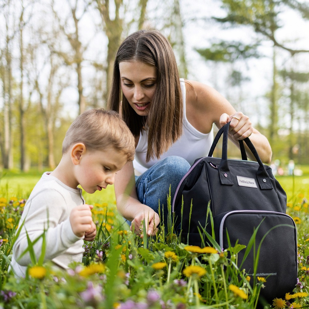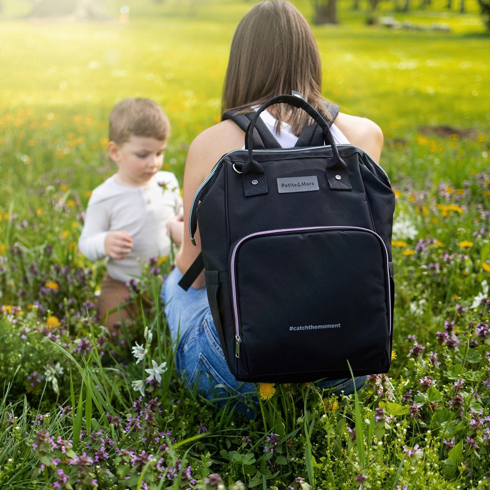 Ez a kényelmes és rendszerezésre tökéletesen átgondolt hátizsák kiváló minőségű, nedvességálló anyagokból készült. Oldalpántokkal rendelkezik a babakocsihoz való rögzítéshez, a fő rekesz pedig kétirányú cipzárral záródik. A nagyszámú zseb, köztük funkcionális zsebek, és az oldalsó nyílásnak köszönhetően könnyű hozzáférés a tartalomhoz, megkönnyíti a csomagolást egy kiránduláshoz vagy sétához. A hátizsák rendelkezik egy hőszigetelő zsebbel, egy zsebbel a vizes holmik számára, palackok számára kialakított zsebekkel és egy kulcstartóval a kulcsok számára. A csomagban pelenkázó alátét is található. A hátizsák súlya a benne lévő tárgyak nélkül nem haladja meg az egy kilogrammot.