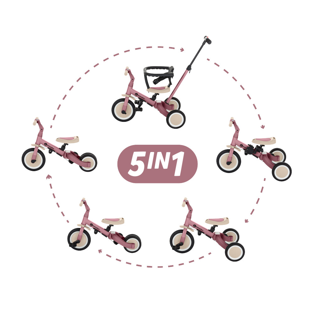 Multifunkcionális tricikli 1,5 és 5 év közötti vagy legfeljebb 25 kilogrammos gyermekek számára. Nem csak közlekedési eszköz a mozgáshoz és az egyensúly elsajátításához, hanem a növekvő gyermek társa is a fejlődés számos szakaszában. A kerékpár átgondolt változtatása alkalmazkodik a kisgyermek igényeihez, ahogy a motoros képességei fejlődnek. Kezdetben háromkerekű kerékpár, szülői segítséggel, míg a végleges változat egy hagyományos, pedálos kerékpár, további támogató funkciók nélkül. Az ilyen változtatásoknak köszönhetően segíthet gyermekének megtanulni két keréken közlekedni.