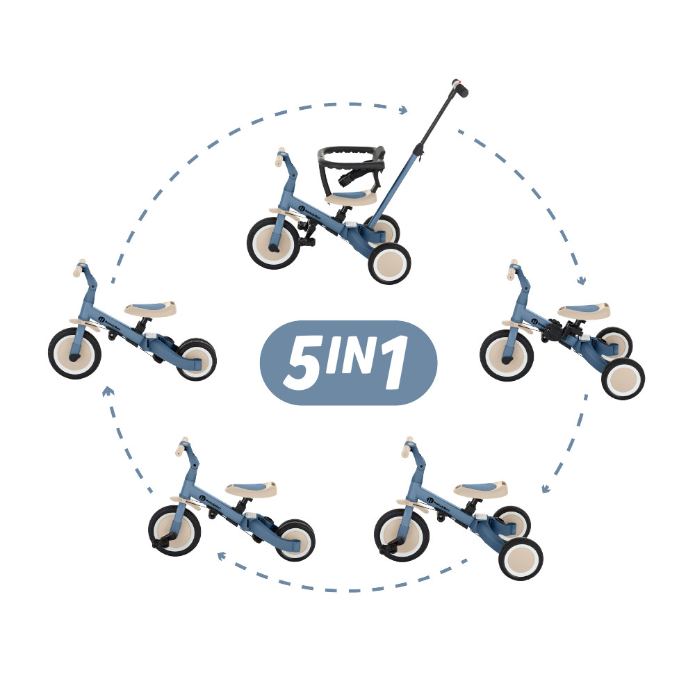Multifunkcionális tricikli 1,5 és 5 év közötti vagy legfeljebb 25 kilogrammos gyermekek számára. Nem csak közlekedési eszköz a mozgáshoz és az egyensúly elsajátításához, hanem a növekvő gyermek társa is a fejlődés számos szakaszában. A kerékpár átgondolt változtatása alkalmazkodik a kisgyermek igényeihez, ahogy a motoros képességei fejlődnek. Kezdetben háromkerekű kerékpár, szülői segítséggel, míg a végleges változat egy hagyományos, pedálos kerékpár, további támogató funkciók nélkül. Az ilyen változtatásoknak köszönhetően segíthet gyermekének megtanulni két keréken közlekedni.