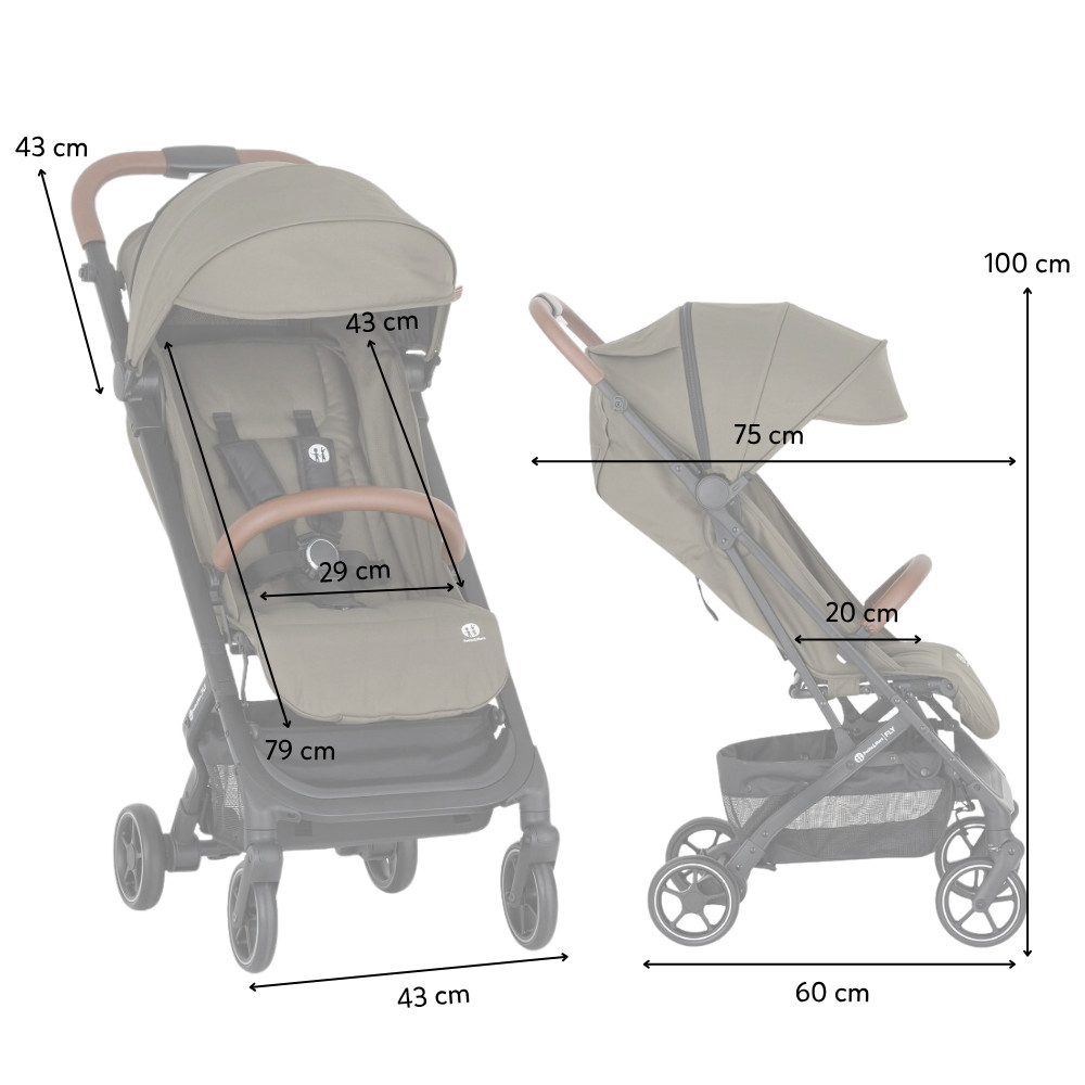 · Szétnyitott babakocsi méretei: 100 x 60 x 43 cm