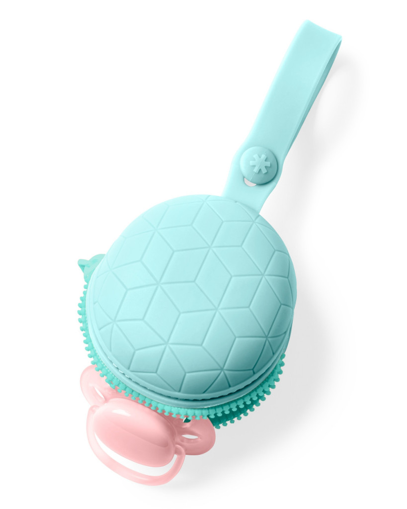 Biztonságos cipzárjával és modern kompakt formájával ez a szilikon cumitartó tisztán és készenlétben tartja babád cumiját. Akár kettő cumi tárolására is képes, könnyen tisztítható a mosogatógépben. Gombos övvel babakocsihoz, pelenka táskához csatolható.