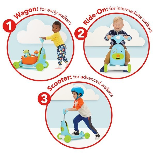 1. szakasz: gyalogos/kocsi üzemmód elragadja a korai gyaloglást, amikor járni tanulnak, és lehetővé teszi számukra, hogy kedvenc játékaikat tolják és húzzák