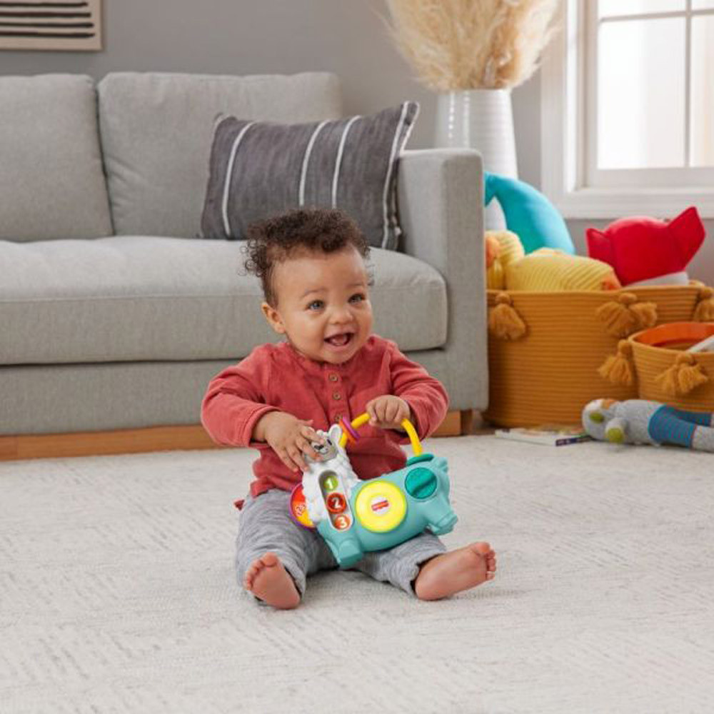 A Fisher-Price Linkimals Csodás színek és fények láma fejlesztõ játékokkal és interaktív szórakoztató tanító funkciókkal várja a legkisebbeket. Amikor a kicsik fel-le csúsztatják az 1-2-3 számokon a gyûrût, vagy megpörgetik a szivárványkereket, szinte észrevétlenül fejlõdik finommotorikájuk. A játék fényeket villant fel, dalokat játszik le és hangokat ad ki, valamint megismerteti a babákat a színekkel és a számokkal (egytõl háromig). De ez még csak a kezdet! Ha ez a cuki láma felismeri valamelyik Linkimals barátját a közelben, együtt, összehangolt zene- és fénybemutatóval szórakoztatják a kicsiket.
