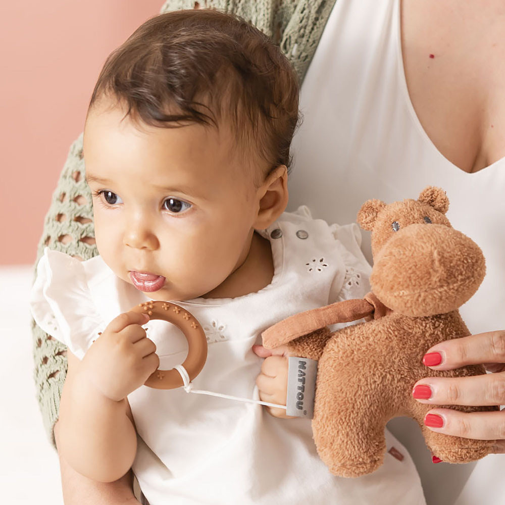 Nattou felhúzós zenélõ játék plüss kicsi Susie and Bonnie - Susie, a víziló barna