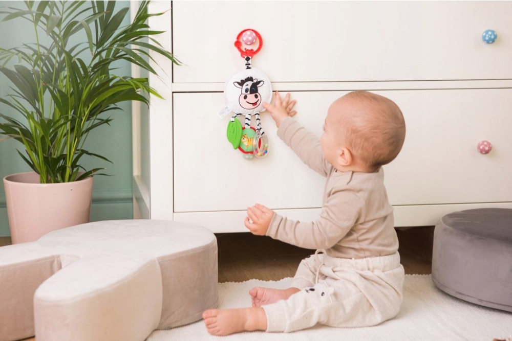 Bali Bazoo Kontrasztos felakasztható plüss játék rágókával és csörgővel - Boci